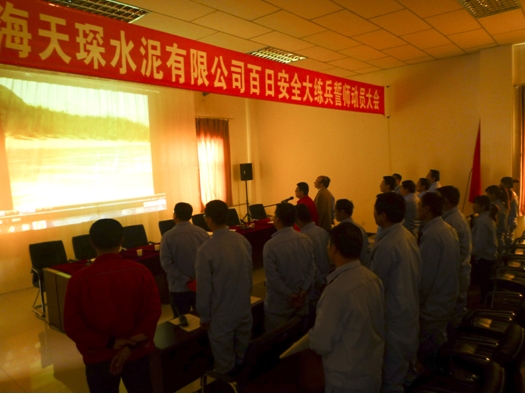 2012年4月29日星期日,天琛公司全體干職員工在辦公樓三樓會(huì)議室召開(kāi)第十一個(gè)安全月“百日安全大練兵”動(dòng)員大會(huì)。會(huì)議由公司安全生產(chǎn)部、綜合管理部組織召開(kāi),公司總經(jīng)理劉礦山在會(huì)上進(jìn)行百日安全大練兵活動(dòng)的動(dòng)員發(fā)言,公司副總經(jīng)理裴建華宣讀活動(dòng)實(shí)施方案,同時(shí)動(dòng)員大會(huì)邀請(qǐng)集團(tuán)運(yùn)行管理部倪宏山參加并發(fā)表講話。