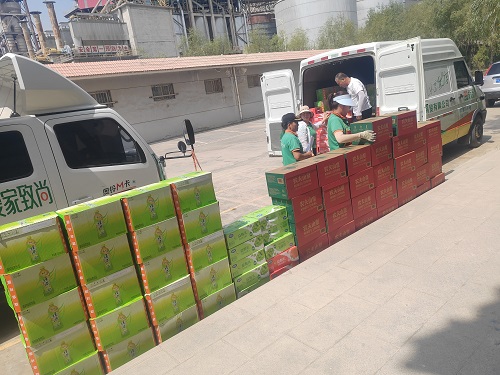 2025年7月15日中寧縣總工會(huì)夏季送清涼、防暑保安康慰問天祥公司職工,送來瓶裝水、茶和乳酸乳等飲品。